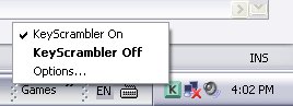 To turn KeyScrambler on and off, double click the tray icon in the lower right corner of your screen: