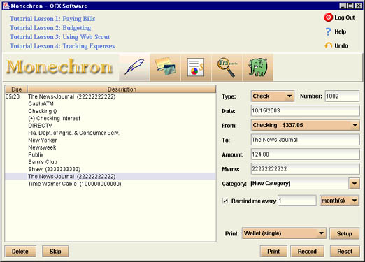 weekly/monthly/annual budget (see also Tutorial Lesson