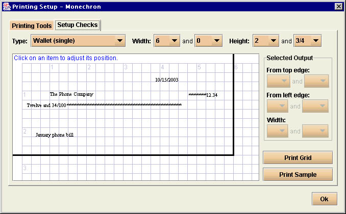 writing checks and printing them out on regular wallet checks,
